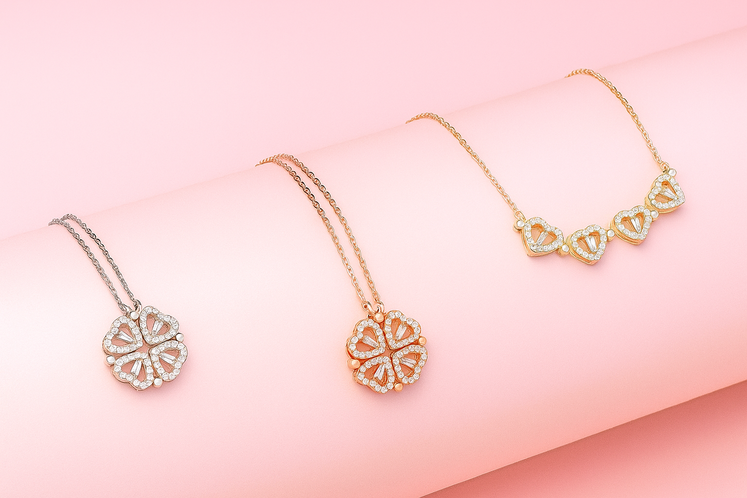 One pendant. Four hidden hearts. Watch her eyes light up when she discovers this elegant piece can be pulled apart to reveal four individual hearts. Beauty meets surprise in the most romantic way.